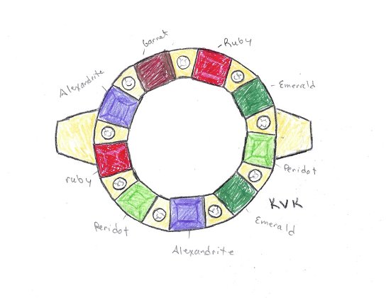 Custom Birthstone Ring, Size 8.5, 14kt yellow gold, lab created birthstones for proper matching size. Total Cost: $5895